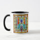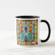 Weiß und schwarz 11 oz. Combo-Tasse mit beidseitigem Abbild einer Buntglasfantasie, die aus rotem, orangefarbenem, gelbem, grünem, blauem, aqua- und rosafarbenem Farbglas besteht, die mit leuchtenden grünen Orgeln und tiefroten Kristallorben überzogen ist. Siehe dazu Espresso-Tasse, Süßkarton, Flasche, Papiertüte, quadratische Keramik, Trivet mit quadratischem Rahmen und Untersetzer. Sehen Sie sich die gesamte Sammlung This & That Tasse im ZUHAUSE-Bereich an.