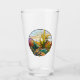 Stilvolles Bierglas besticht durch eine durch künstliche Intelligenz erzeugte Wüstenlandschaft im Aussehen von Buntglas mit Kakteen und Bergen.