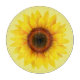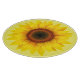 Das Glas-Schneidebrett wird in einem runden Stil in einem schönen Sonnenblumendruck gezeigt. Passen Sie dieses Objekt an oder kaufen Sie, wie es ist. Stock Print