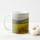 Kaffee-Tasse mit Fotografie durch Cozmic Dave von Glastonbury (der Felsen im Abstand), Somerset Großbritannien.
