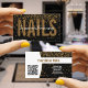 Ein vergoldetes Imitat Glitzer über schwarze Sets vor dem Hintergrund dieses Visitenkartendesigns mit Vorlagenname und Vorlagentitel auf der Vorderseite. Die Rückseite beinhaltet ein koordiniertes Design und Farben mit Textfeldern für den Firmennamen und Details sowie den QR-Code-Platzhalter. Ersetzen Sie den QR-Code des Platzhalters durch Ihren. Füllen Sie die Vorlagenfelder aus, oder klicken Sie auf Anpassen, um den gewünschten Stil, die gewünschte Größe und Schriftart auszuwählen. Verwenden Sie den QR-Code-Link, um Kunden auf Ihre Website, Fotos, Empfehlungen/Rezensionen oder andere Websites zu schicken. HINWEIS: Der Titeltitel passt nur in eine begrenzte Anzahl von Zeichen in einer Zeile.