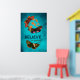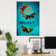 Eine inspirierende und motivierend Botschaft, "Glaube an dich selbst", über einen wunderschönen aquamarinen Hintergrund mit Schmetterlingen und Blume.
