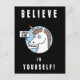 Ein Cartoon mit einem entschlossenen Ausdruck, "Glaube an dich selbst" und "Ich glaube an mich" in einem Wortballon. Farbgrafik, T - Shirt, Schweiß, Karten & Geschenke.