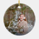 Das schlichte und elegante Urlaubssornament besticht durch ein Foto auf beiden Seiten, das in weißen Schriftzeichen überlagert ist. Personalisiert mit dem Jahr unten.