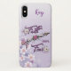 Personalisieren Sie Ihr Handy mit diesem "One of a Kind" Spirituellen iPhone Case. Mit inspirierenden Worten.."Glaube über Angst"... und einem wunderschönen Pfeil eingebettet zwischen Hübschen Rosa & Creme-Blume mit Lila Federn. Original Grafik Design von Künstler Kerry Miller.