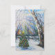 Mitten im Wald steht ein schön gezimmerter Weihnachtsbaum, der an einem sonnigen Wintertag strahlt. Tiefe Schneefänge erhellen das Licht und deuten auf die Spuren des freundlichen Souls hin, das in den Wald kam, um Lichter und Ziergegenstände an den Ästen aufzuhängen, um eine kleine Weihnachtszauberei zu schaffen. Eine Weihnachtskarte.