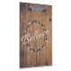 Glauben Sie die Textgestaltung für Weihnachten mit Kranz- und Schneedekoration auf rustikalem Holzboden