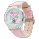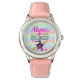 Kinderuhr aus Edelstahl mit rosa Lederarmband