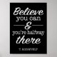 Glauben Sie, Sie können Motivierend Poster - Den amerikanischen Präsidenten Theodore Roosevelt zitieren: "Wenn Sie glauben, können Sie auf halbem Weg dorthin sein." Gewiss inspirierende Worte zu leben! Weck auf, ergreife den Tag und fühle mich mit diesem sensationellen Poster verjüngt. Die ideale dekorative Touch zu Ihrer Küchenmauer. Genießen Sie Ihren morgendlichen Kaffee oder das perfekte Geschenk für einen Freund. Dieses inspirierend Design ist in Karten und Plakaten erhältlich.