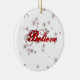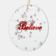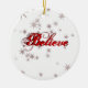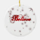 Das Wort "glauben" an Rot mit geringfügiger schwarzer Kontur gegen einen Hintergrund des Silbers sieben gezeigte Sterne.