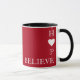 Moderne, stilvolle rot-weiße LIEBE HOPE BELIEVE Personalisierte Mug mit den Worten HOPE und BELIEVE auf der Vorderseite, plus ein Extrakt aus 1 Korinther 13:7-8 - LIEBE VERSAGE NIE auf der Rückseite. An der Vorderseite wird das O in HOPE durch ein Herz ersetzt. Auf der Rückseite wird das O in LIEBE durch ein Herz ersetzt, und es gibt eine KUNDENBARE Schrift von 1 Korinthen 13:7-8, gefolgt von einem PLACEHOLDER NAME. Sie können dies durch Ihre bevorzugte Bibelversion plus Ihren Namen ersetzen. Ein ideales Geschenk für Valentine, Geburtstage und Weihnachten. Farbschema ist WHITE Typografie auf einem modernen DEEP RED Hintergrund. Andere Farben sind verfügbar.