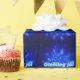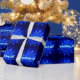 Ein Schwarm blauen Fraktals Schneeflocken. Der isländische Text "Gleðileg jól" (Frohe Weihnachten) erscheint in blau-weiß.
