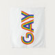 Dieses Kunstwerk enthält das Wort Gay in einem bunten Regenbogen-Schriftart.