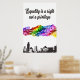 Gleichheit ist ein Recht, kein Privileg-Poster. Inspirierend Design, um zu betonen, dass LGBT-Leute genauso behandelt werden sollten wie heterosexuelle Menschen.