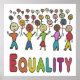 Das Design der Gleichheit umfasst eine Sammlung verschiedener Personen und das Wort Gleichheit darunter. Der Versuch, eine vereinende Grafik zu finden, die die Menschen verbindet, anstatt sie zu teilen. Wir sind alle Menschen - fangen wir an und Leckerei mit Respekt und Freundlichkeit, feiern unser Diversity - und streben nach echter Gleichheit.