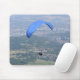 Heller blauer Gleitschirm mit Clermont-ferrand im Hintergrund. Die Fotografie wurde von der Spitze Puy de Dome, ein ausgestorbener Vulkan in Auvergne, Frankreich genommen.
