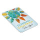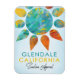 Helles, farbenfrohes Glendale California Design, das zu 100% von Sunshine zugelassen ist. Die warmen Farben Rot, Orange, Türkis und Aqua sind im Aquarellmuster gehalten und auf einem hübsch blauen Hintergrund gehalten.