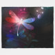 Glassierende, fliegende, rote Libelle mit durchsichtigen, detaillierten Flügeln auf dunklem, nächtlichem, leuchtendem Hintergrund mit tropischen Pflanze und Glühwürmchen. Rote Libelle.