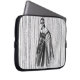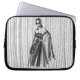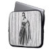Das ist eine stilvolle Schwarzweiß-Modeabbilderin, die eine gepochte Frau in einem dramatischen, von der Schulter abgehenden Gewand mit aufwändigen Blumenverzierungen und einem fließenden, schieren Kap zeigt. Der Hintergrund weist eine auffallende vertikale Linienstruktur auf, die ein Gefühl von Tiefe und Bewegung vermittelt