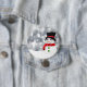 Niedlicher Schneemann glitzert in der Sonne. Roter Scarf, schwarzer Top Hut und grüne Knöpfe.
