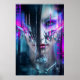 Glitch Cyberpunk Face Neon Distortion Portrait Poster