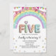Glitter FIVE Girly Rainbow Sequin 5th Birthday Invitation