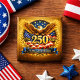 This striking patriotic design celebrates the 250th Anniversary of the United States of America with a luxurious, glitter-enhanced emblem. At the center, a majestic bald eagle spreads radiant, glittering golden wings, symbolizing strength, freedom, and national pride. The eagle rises before a deep navy star-filled field, while a flowing American flag adds dynamic movement below. Bold metallic gold numerals “250” shimmer with glitter accents, flanked by the historic dates 1776 and 2026. An elegant gold laurel wreath encircles the design, and a rich blue ribbon banner at the base reads “YEARS ANNIVERSARY,” completing a formal, celebratory composition perfect for commemorating America’s semiquincentennial. Glitter is simulated in the design.