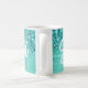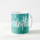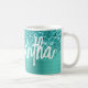 Passen Sie die Farbe und Größe des weißen Schriftartes an, wie sie für ihren Vornamen benötigt werden. Wählen Sie Ihren eigenen Schriftart Stil! Es gibt mehrere fette, moderne Schriftart für die Kalligraphie von Pinselskripten. Im Hintergrund sind große Imitate aquamariner Glitzer und Imitate aus gebürstetem Metall türkisfarben Folie. Die Glam aus mädchenhaftem Glitzer druckt wie ein Foto auf dieser Tasse.