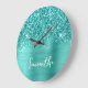 Glittery Aquamarin Türkis Glam Weißer Skriptname Große Wanduhr