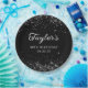 Erstellen Sie Ihre eigenen 40. Geburtstag Party dekorative kleine runde Papier Teller. Girly Imitats funkelnd schwarzer Glitzer über eine anpassbare schwarze Hintergrundfarbe. Passen Sie die Stile des Schriftartes an, um sich für ihr besonderes Meilenstein-Fest zu kreieren. Eine klassische, elegante Kalligraphie gepaart mit einem Schriftart aus Serifen. Die Imitate Glitzer und Glitzern werden mit digitalen Kunstelementen erstellt, die wie ein Foto gedruckt werden.