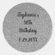 Glittery Gray Silver Custom Happy Birthday Name Runder Aufkleber