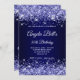 Eine elegante mit Monogramm 50. Geburtstagseinladung für sie. Passen Sie den Text für ein weiteres Meilenstein-Geburtstagsfest an. Die digitale Kunst bietet Imitate funkelnd blauen Glitzer mit extra Glitzern gegen ein dunkelmarineblau ombre Bild. Das extravagante Single-Letter-Monogramm mit weißer Kalligrafie kann angepasst werden. Alle glänzenden Elemente in diesem modernen mädchenhaften Design sind digitale Grafiken.