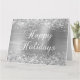 Horizontal formatiert mädchenhafte Imitate funkelnd Glitzer Silber-Folie Digital-Kunst Grafik mit einer klassischen Kalligrafie Happy Holidays Textgrafik. Sie können das Typografiebild löschen und einen der schönen Kalligraphie-Schriftart aus dem System verwenden. Traditionelle silbergraue Urlaubstöne. Das sind schöne Grafiken, aber das ganze glitzernde Funkeln und Glanz in den Grafiken wie ein Foto. Fügen Sie dem Inneren ein Foto der Familie hinzu, wenn Sie möchten.