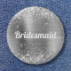 Eine geisterhafte Glam-Taste für die Brautmädchen in Ihrer Hochzeitsfeier. Alle modernen, eleganten Kalligrafiettexte sind anpassbar. Im Hintergrund befinden sich Imitate aus metallischer Silber-Folie mit funkelnd silbergrauem Imitat-Glitzer. Diese Digitalelemente drucken wie ein Foto.