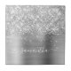 Girly Imitate funkelnd silberne Glitzer Highlights auf der links Kante über einem Imitat silbergraue bürstenbehaftete Metallfolie. Die moderne mädchenhafte Unterschrift besticht durch einen eleganten Kalligraphie-Schriftart mit dekorativen Schwänzen. Passen Sie die Stile des Schriftartes an, um Ihre eigene dekorative Keramik Kachel Geschenk für ein überhändiges Gastgeschenk Hochzeit Geschenk für Ihr Brautparty zu schaffen.