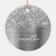 Passen Sie das moderne handgeschriebene Stil-Skript an, um Ihre eigenen personalisierten Rundreisen Keramik Urlaubssornament zu schaffen. Fügen Sie ein Monogramm Initial hinzu, um eine erste Kombination aus Vornamen zu erstellen. Mädchen Imitate silbergrauer Glitzer über eine gebürstete Metallfolie Digital Art Grafik. Glitzern und Glitzer sind digitale Kunst, die wie ein Foto gedruckt wird.