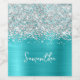 Glittery Silver Turquoise Blue Glam Script Name Weinetikett