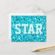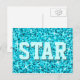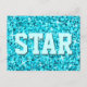 Postcard mit modernem Design, Sterne verstreut über einen stylisierten "Sequin Look"-Hintergrund und "STAR" in Blautönen. Kann als Hintergrund für Ihren eigenen Text, Bilder und Ideen verwendet werden. Bitte beachten Sie, dass es sich um ein gedrucktes, digitales Kunstbild handelt, das weder glänzt noch echter Glitzer oder Sequenzen enthält.