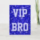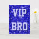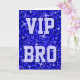 Grußkarte mit modernem bedrucktem Design mit Sternen, verstreut über einen stilisierten "Sequin Look" Muster Hintergrund und "VIP BRO" in Blautönen geschrieben. Ein individuell anpassbares Design für Sie, um mit Ihrem eigenen Text, Bildern und Ideen zu personalisieren. Bitte beachten Sie, dass dies ein gedrucktes digitales Kunstbild ist. Das Produkt leuchtet nicht oder enthält keine echten Glitzer oder Sequenzen.
