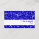 Visitenkarte mit modernem Design mit Sternen, verstreut über einen stilisierten "sequin look"-Musterhintergrund in dunkelblauen Farbtönen und blauer Text auf weißem Hintergrund Bitte beachten Sie, dass dies ein gedrucktes, digitales Kunstbild ist, es glänzt nicht oder enthält echter Glitzer oder Sequenzen.