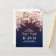 Romantische, weiche, rosa und dunkelblaue Save the Date Postkarten mit sternenförmigen Lichterketten