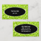 Visitenkarten-Vorlage mit modernem Design mit Sternen verstreut über einen stilisierten "Sequin-Look"-Hintergrund in Kalkgrün mit schwarz ovalem Rand mit weißem und weißem Text. Kann als Hintergrund für Ihren eigenen Text, Bilder und Ideen verwendet werden. Der Text kann leicht mit der Vorlage geändert werden, oder klicken Sie auf die Schaltfläche "Anpassen", um weitere Änderungen vorzunehmen. Bitte beachten Sie, dass es sich um ein gedrucktes, digitales Kunstbild handelt, das weder glänzt noch echter Glitzer oder Sequenzen enthält.