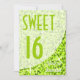 Einladung mit einem modernen Design mit Sternen verstreut über ein stilisiertes "sequin look" gekrümmte Form in Kalkgrün mit "Sweet 16" "You're welcome" geschrieben in grün und weiß. Kann als Hintergrund für Ihren eigenen Text, Bilder und Ideen verwendet werden. Der Text kann leicht mit der Vorlage geändert werden, oder klicken Sie auf die Schaltfläche "Anpassen", um weitere Änderungen vorzunehmen. Bitte beachten Sie, dass es sich um ein gedrucktes, digitales Kunstbild handelt, das weder glänzt noch echter Glitzer oder Sequenzen enthält.