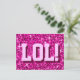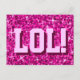 Postcard mit modernem Design, Sterne verstreut über einen stylisierten "Sequin-Look"-Hintergrund und "LOL!" in Rosatönen. Kann als Hintergrund für Ihren eigenen Text, Bilder und Ideen verwendet werden. Bitte beachten Sie, dass es sich um ein gedrucktes, digitales Kunstbild handelt, das weder glänzt noch echter Glitzer oder Sequenzen enthält.