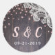 Glitzer aus Spitzholz rustikale Hochzeitsmonogramm Runder Aufkleber