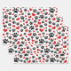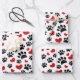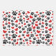 Glitzer Cartoon Dog Paw Prints and Red Hearts Geschenkpapier Set