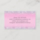 Mit dieser schicken Visitenkarte mit funkelnd holografischen lila und silbernen Imitaten Glitzer Konfetti oben und unten vor einem rosa Hintergrund. Ideal für Schönheitssalons, Make-up Künstler, Laser- und Brow-Profis, Haarstylisten und Ästhetiker.