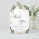 Eine Dankeschön-Karte für einen 50. Geburtstag (oder jedes Alter). Ein schick weißer Hintergrund mit Eukalyptusgrün und Imitaten goldenen Glitzer Staub. Vor dem großen schwarz gefärbten handgeschriebenen Skript und den Text: Danke, Ihr Text, Titel und ein Datum. Zurück: Personalisieren Sie Ihre Dankeschön Notiz und Name.
