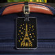 Dieser moderne Gepäckumbau ist für einen diesen Reisenden Lieben Paris nachts ideal. Er kennzeichnet den Eiffel-Turm, das Wort "Paris", die kleinen Sterne und die Kreise mit einer Glitterbeschaffenheit auf einem schwarzen Hintergrund. Schicker und zeitloser Entwurf groß während irgendeines Alters. Fügen Sie Ihre persönliche Information über die Rückseite hinzu.