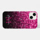 Hot rosa Imitats Glitzer Glitzern Klingeln Monogram iPhone Case. Trendy Farben gürlich schicke Glaswand Gehäuse: Monogram Personalisieren Sie mit Ihrem individuelle Name. Eleganter, blendender, schimmernder, lebendiger, üppiger, lebhafter Glamour in tiefrosa Farbe. Schöne glamouröse Hot Pink glänzende Glitzer Glitzern. Foto von rosa Glitzern, nicht wirklich Glitzer!